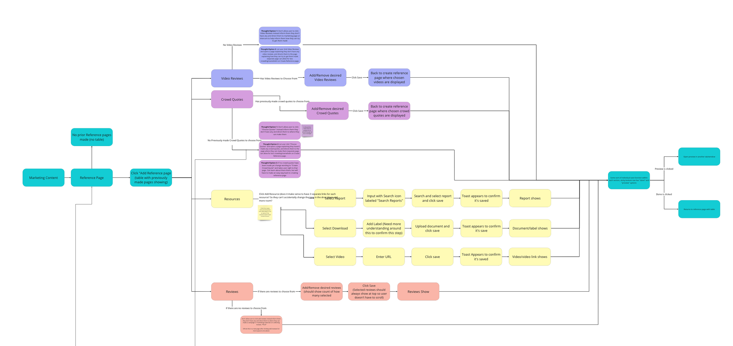 The current process of creating a Reference Page had many steps, buttons, and different paths the user could take depending on the content they wanted to add to the page (quotes, videos, reports, downloads, etc).