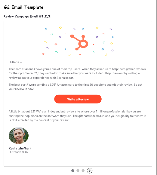 I wanted to include all 3 email template examples so customers had transparency on what G2 would be emailing their contact list.