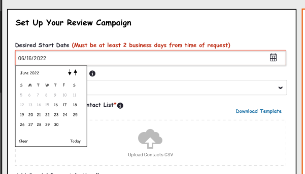 Review Campaigns can only begin on Tuesdays or Thursdays, and there have to be 48 hours advance notice.