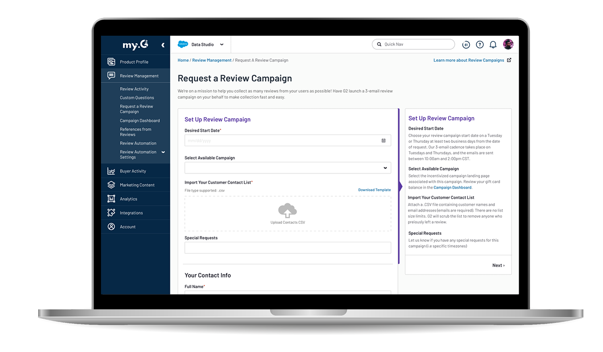 As a B2B software review site, the most frequent customers request received at G2 is to help run a review campaign.